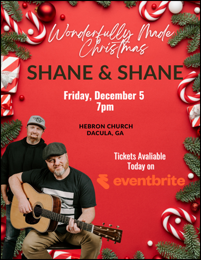 Join us for an inspiring evening of worship, hope, and holiday joy as we support The Haven at Hebron, a Georgia maternity home, providing a safe and stable Christ-centered residential program for young women facing unplanned pregnancies. 7:00 p.m., (678) 277-0506