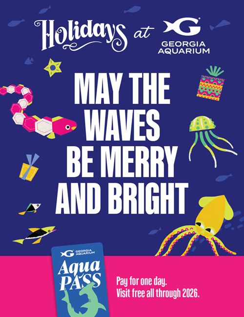 Take in the sights and sounds of Holidays at Georgia Aquarium in our completely transformed atrium with festive music, winter-inspired projections, and our 40-foot live tree. We are proud to bring back some of your holiday favorites including photos with Santa, daily lighting of our tree, and holiday-themed dolphin presentations. We cannot wait to sea you! 404-581-4000